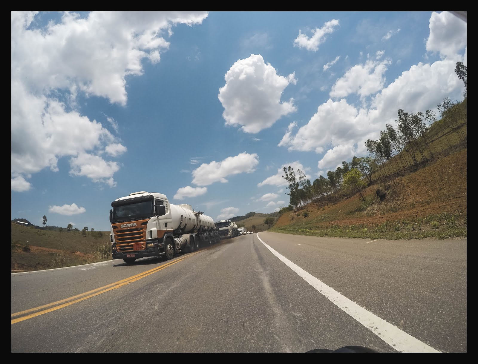 Seguimos agora pela BR-116 até Leopoldina, onde tomamos a direção de Cataguases, Astolfo Dutra e Piraúba. Chegando em Piraúba, certo cansaço bateu, muito pelo calor que ainda fazia, apesar de estarmos sentido aquele cheirinho de Minas Gerais, kkk. Paramos novamente por lá, em um pequeno bar/lanchonete. Mais uns 15 minutos de descanso e ficamos prontos para o trecho final, que incluiria a já conhecida subida da Serra de Santa Bárbara.